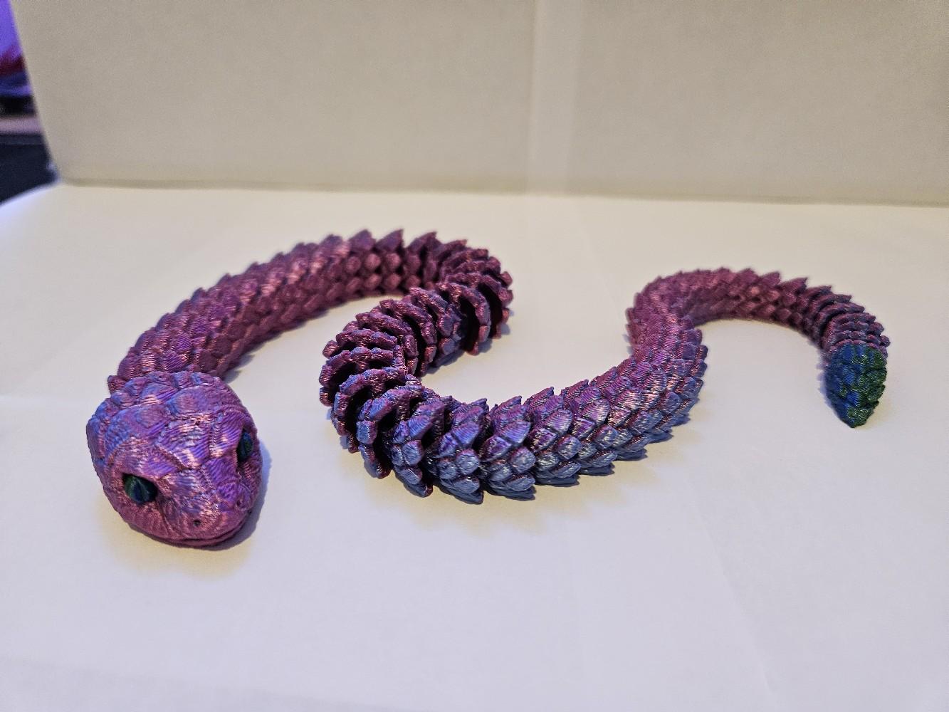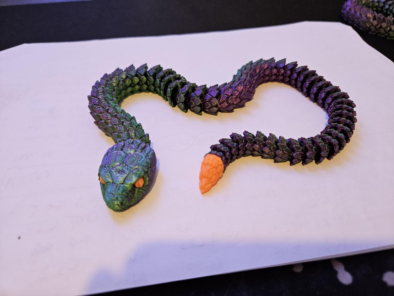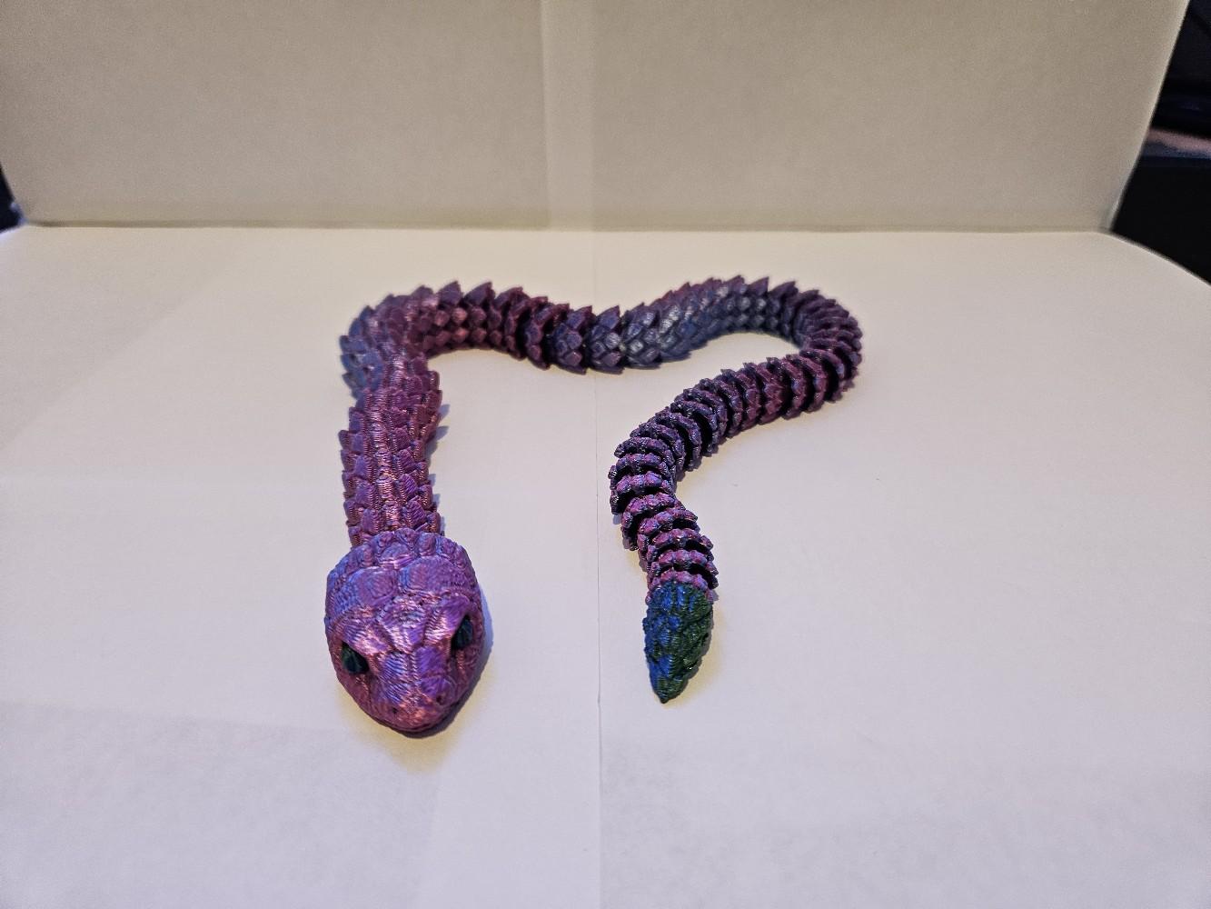 Looking for a unique and fascinating decor piece for your home or office? Look no further than our 3D Printed Articulated Snake! This incredible piece is sure to catch the eye of anyone who enters the room, with its intricate design and striking appearance.