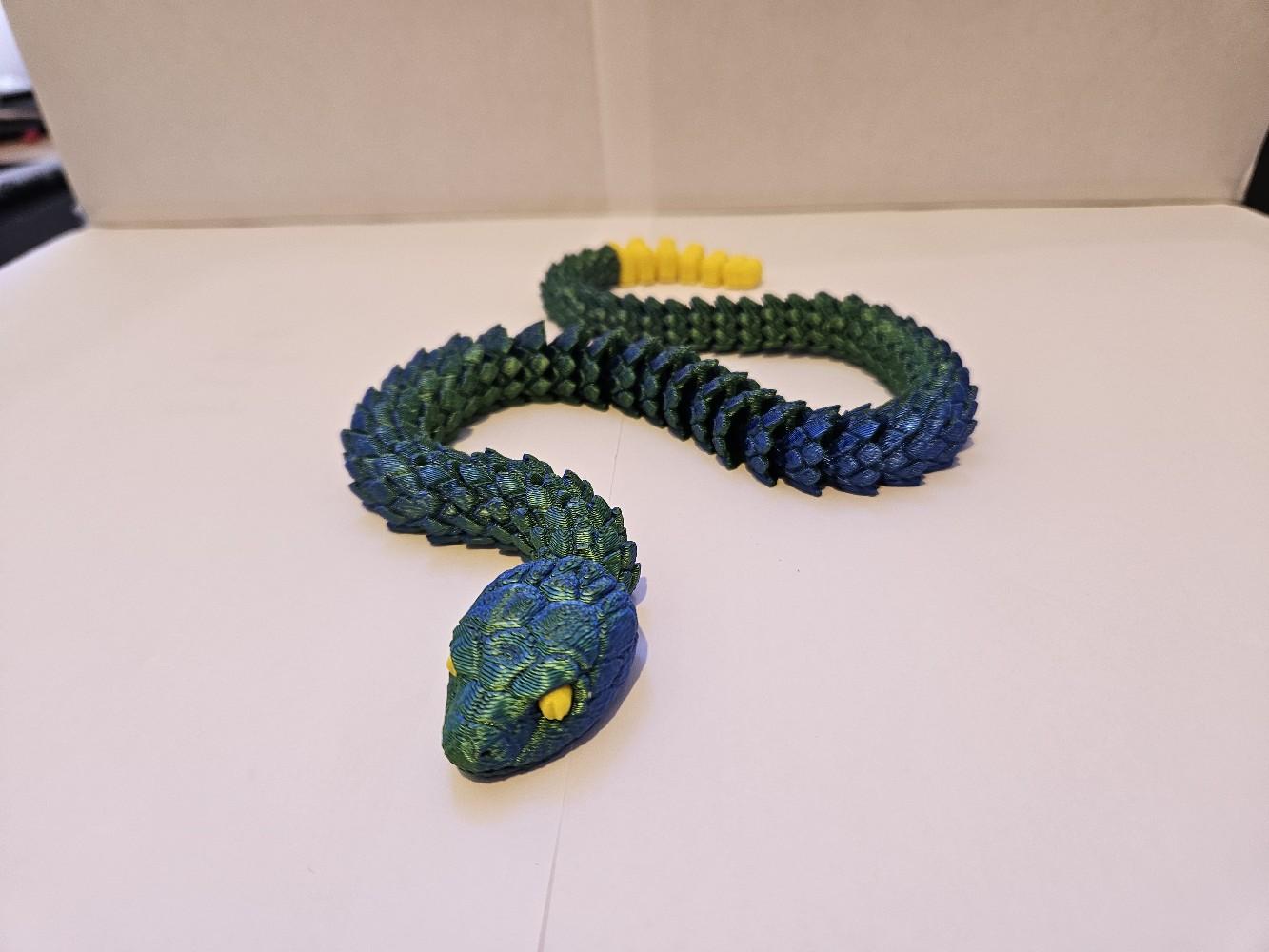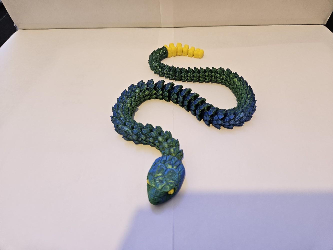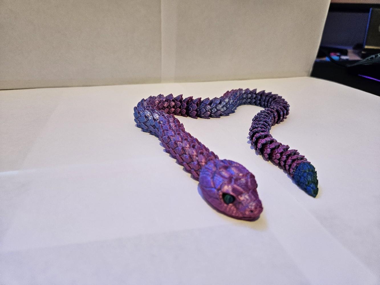Looking for a unique and fascinating decor piece for your home or office? Look no further than our 3D Printed Articulated Snake! This incredible piece is sure to catch the eye of anyone who enters the room, with its intricate design and striking appearance.