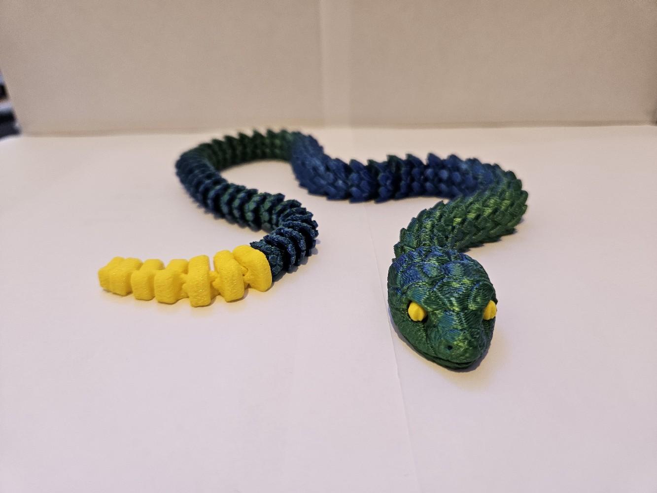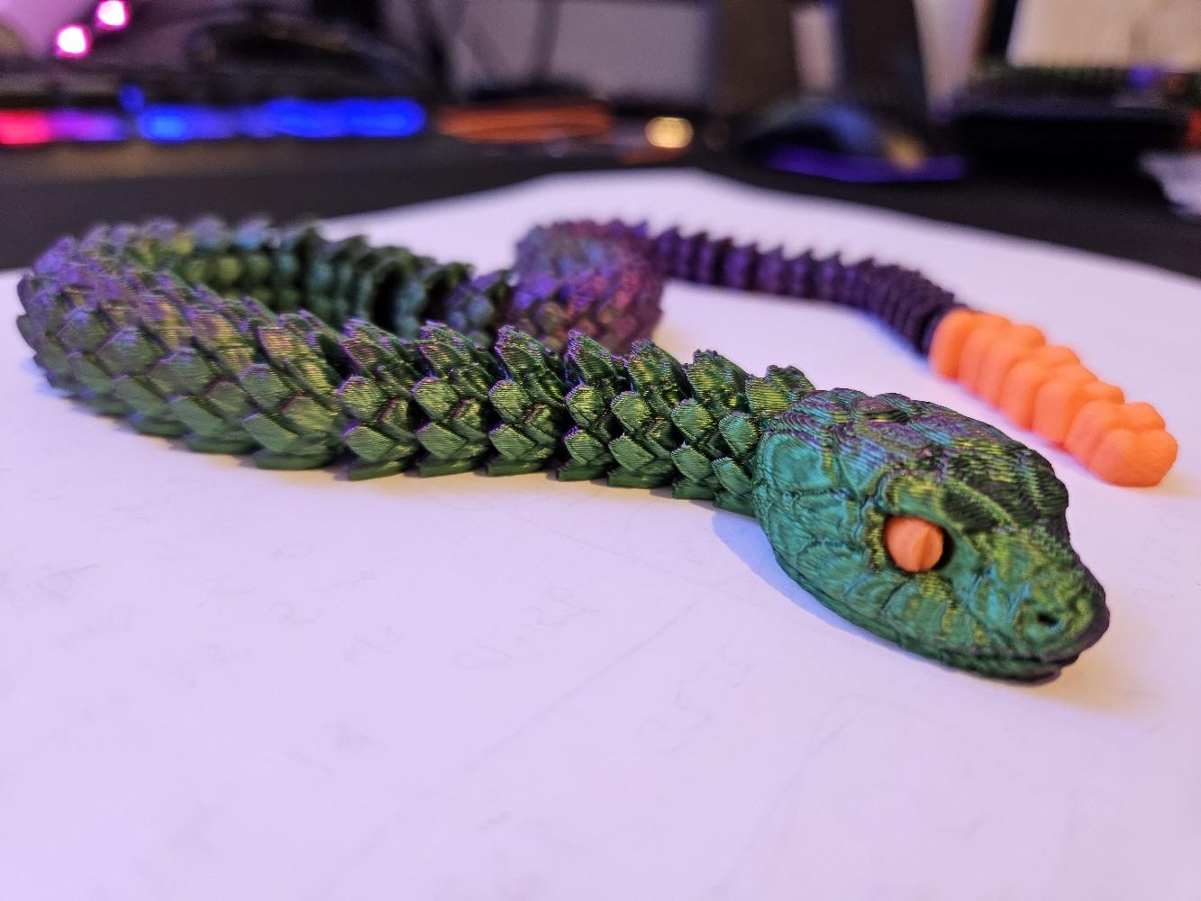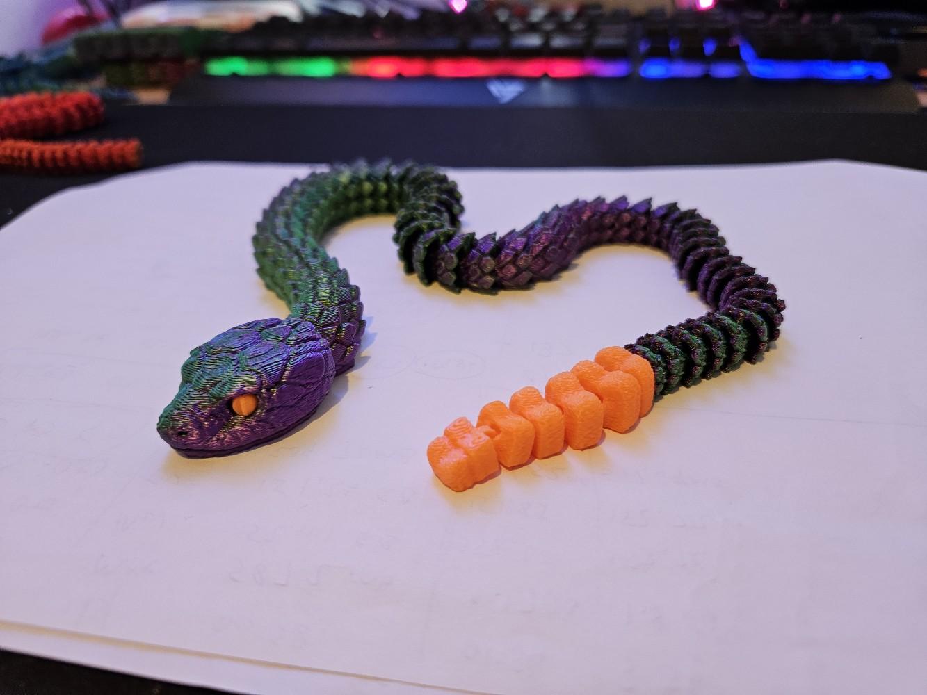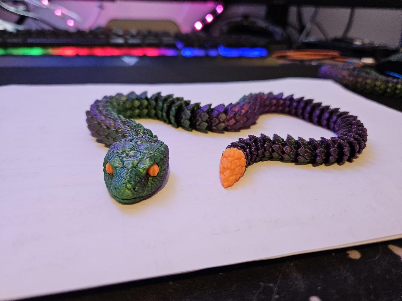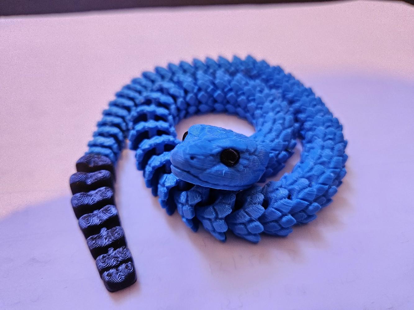 Crafted using high-quality 3D printing technology, this snake is available in a variety of colours, including stylish two-toned options. The snake's articulated design allows it to be posed in countless different positions, making it an endlessly versatile decor piece that can be customized to suit your space.