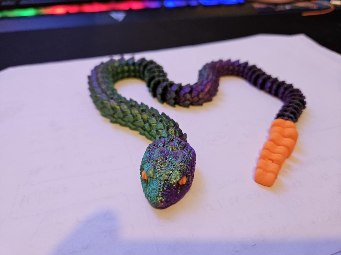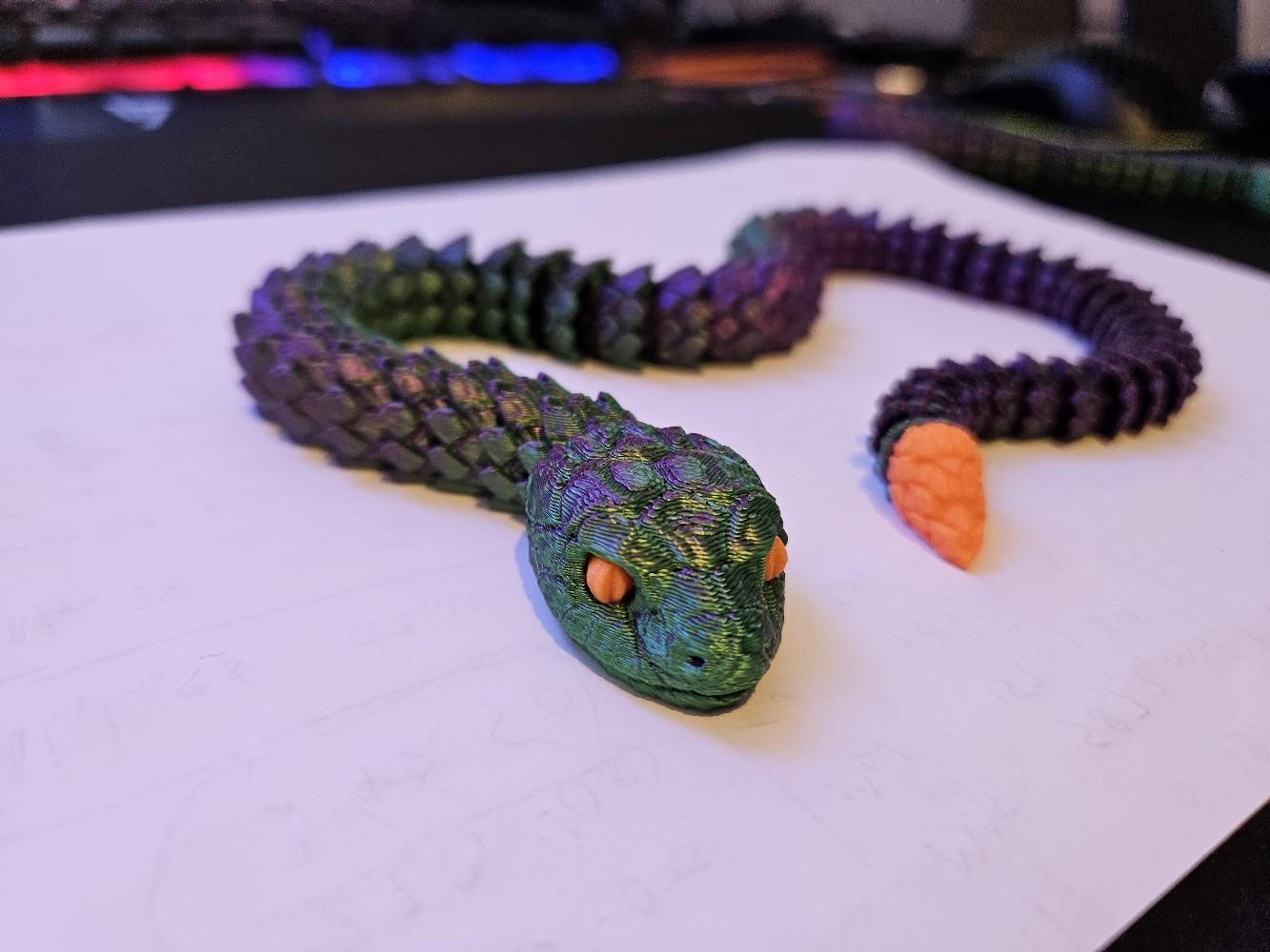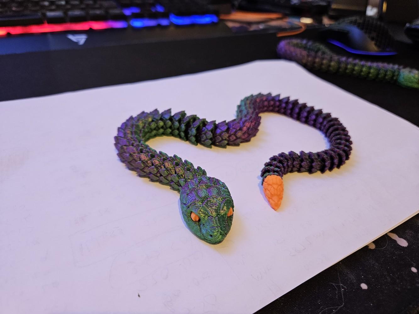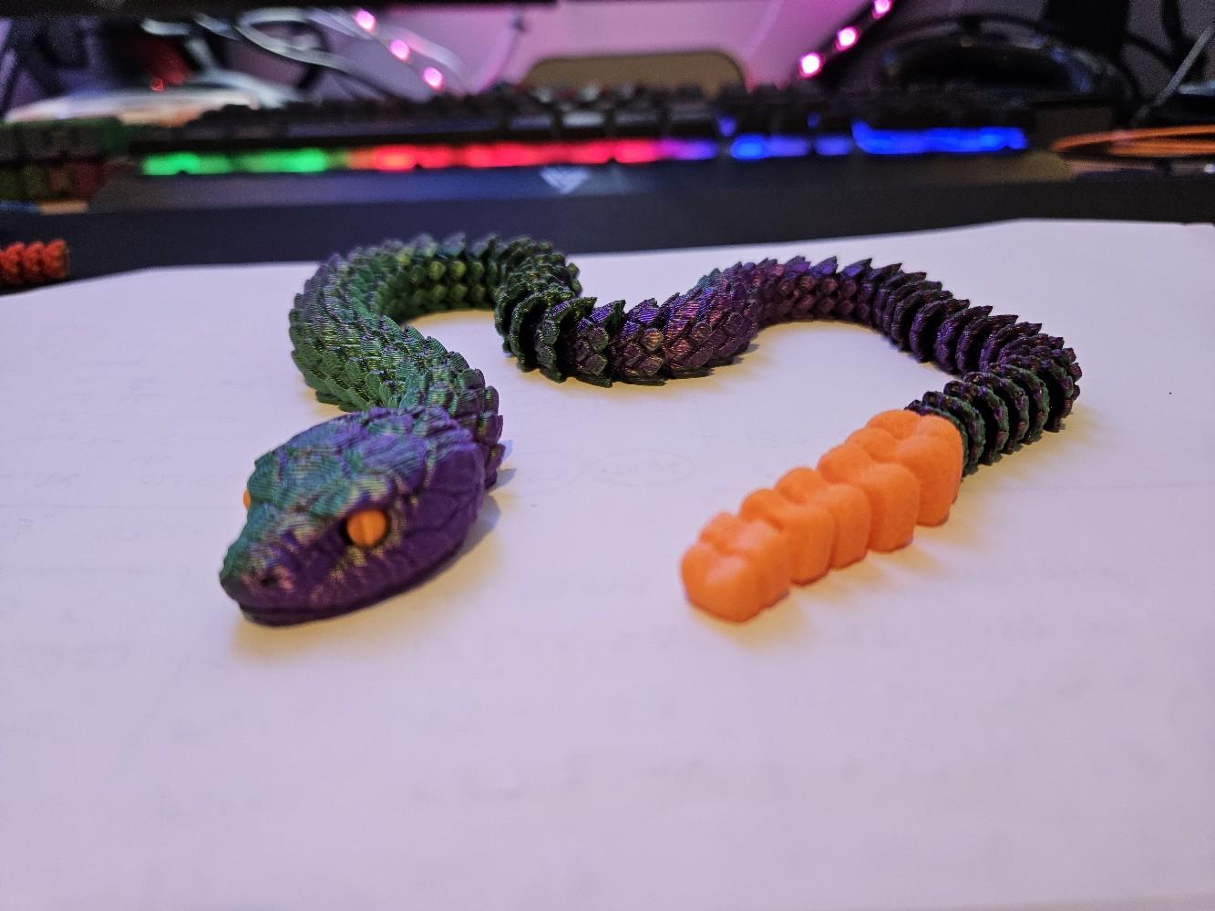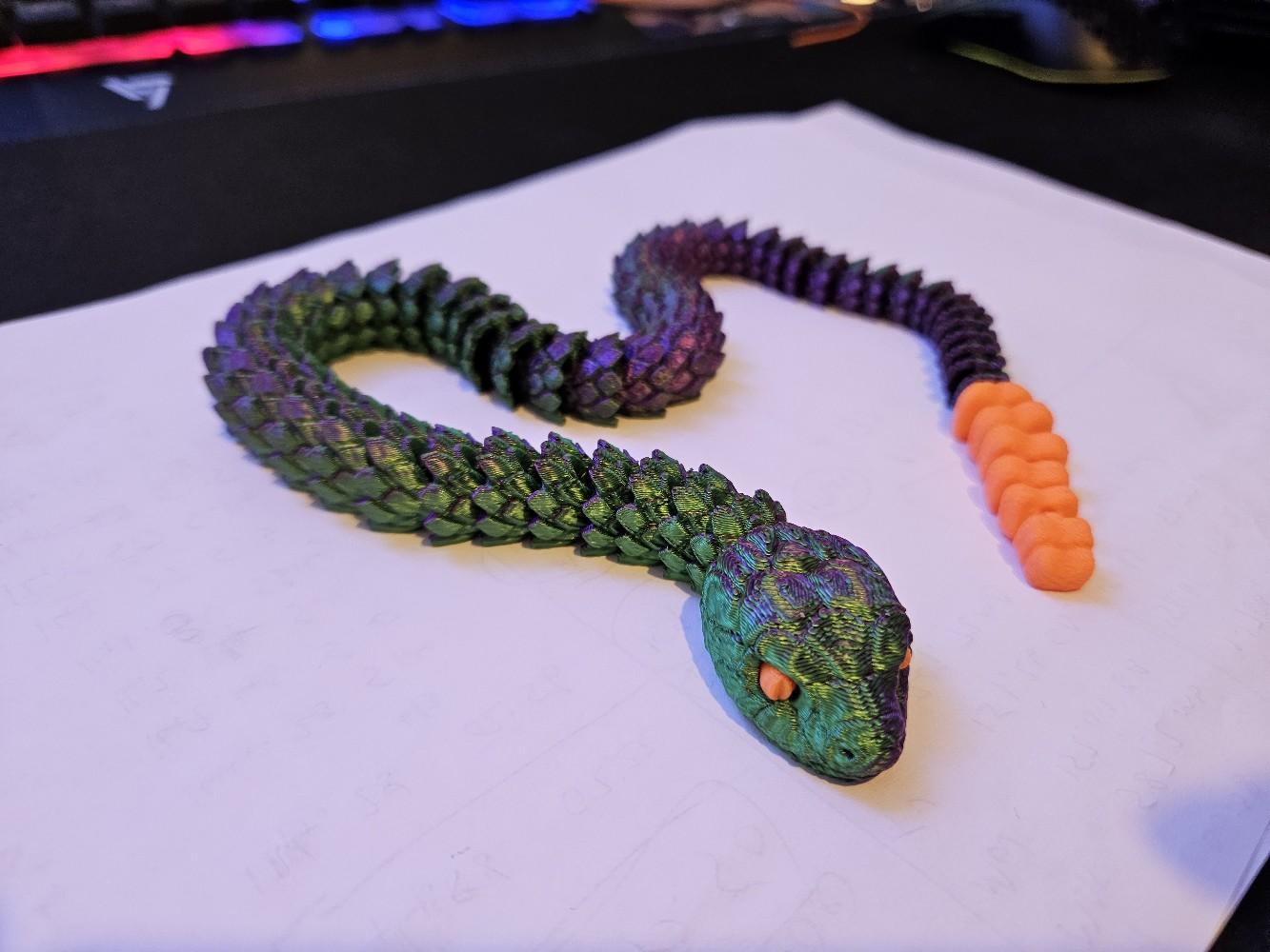Crafted using high-quality 3D printing technology, this snake is available in a variety of colours, including stylish two-toned options. The snake's articulated design allows it to be posed in countless different positions, making it an endlessly versatile decor piece that can be customized to suit your space.