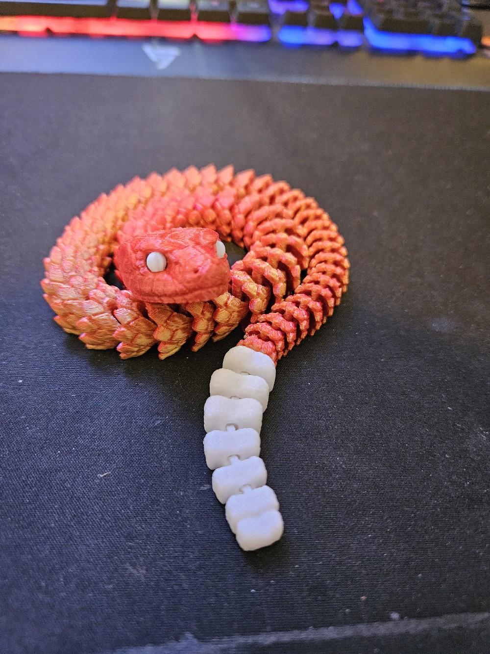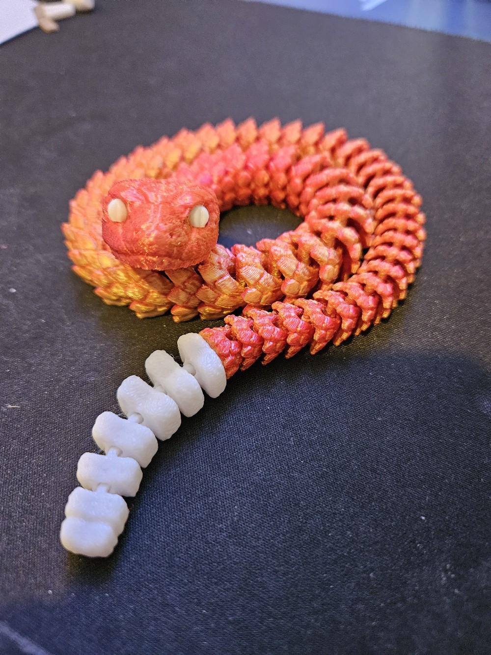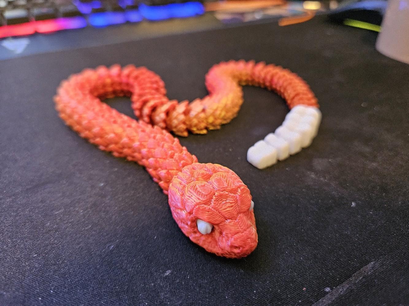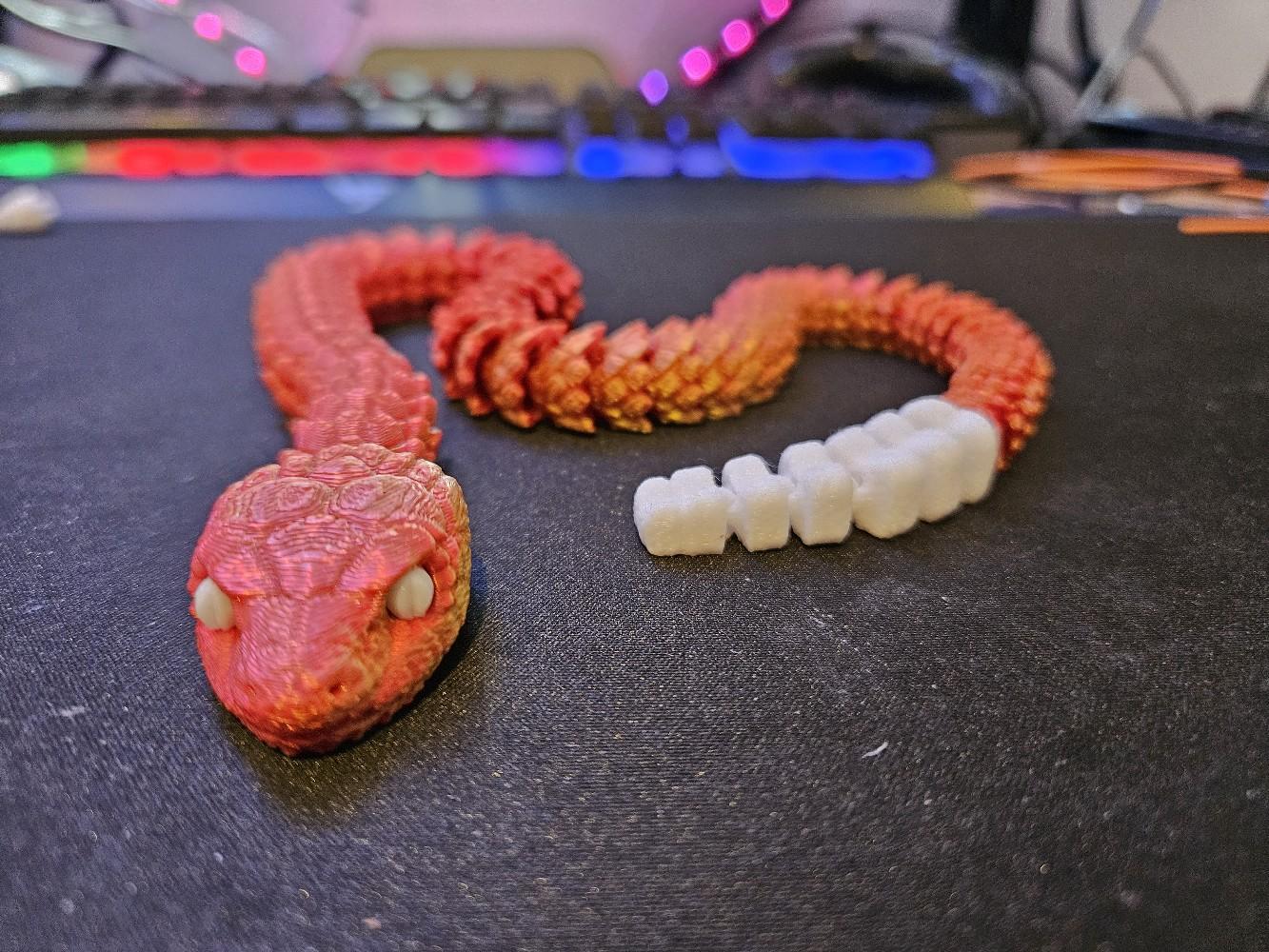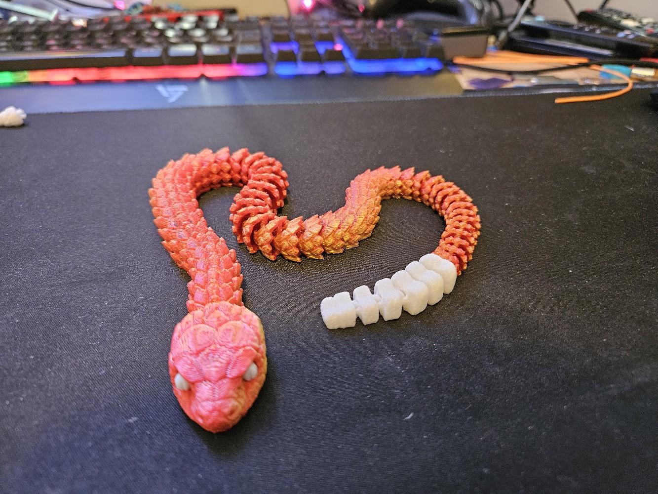 Crafted using high-quality 3D printing technology, this snake is available in a variety of colours, including stylish two-toned options. The snake's articulated design allows it to be posed in countless different positions, making it an endlessly versatile decor piece that can be customized to suit your space.
